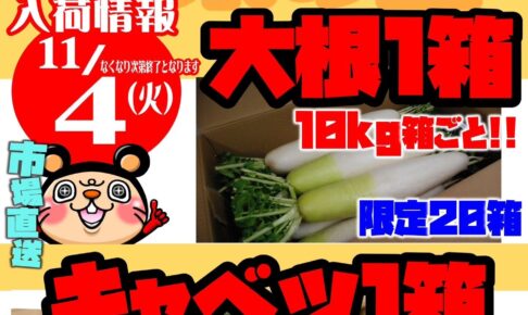 アミューズ《完売御礼❗️❗️》 本日入荷しました「大根1箱」はご好評につき、先ほど完売いたしました!! また「キャベツ1箱」もあとわずか❗️ もう間もなく完売となりそうです 誠にありがとうございました😁 来週もお楽しみに~👋 毎週…