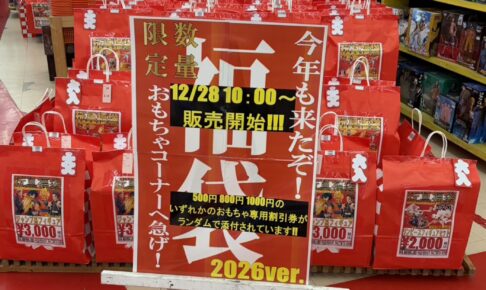 イベント情報お知らせ!! 12/28 10:00〜おもちゃコーナーにて福袋の販売を開始します!!おもちゃ専用割引券も付いています!! 各ジャンル 数量限定、無くなり次第終了になりますので売切の際はご了承くださいませ ※28日10:0…