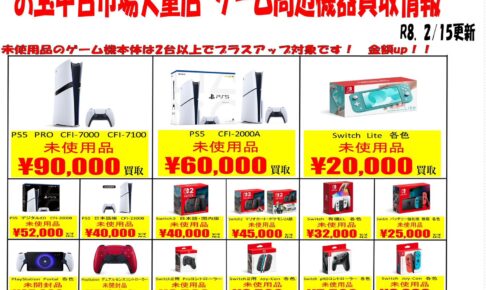 買取情報ゲームハード買取価格更新いたしました!!! ゲームハードのプラスアップもしておりますのでぜひ当店にお持ちください!!!#お宝中古市場天童店 #おたちゅう #買取#ニンテンドースイッチ #PlayStation5 pic….