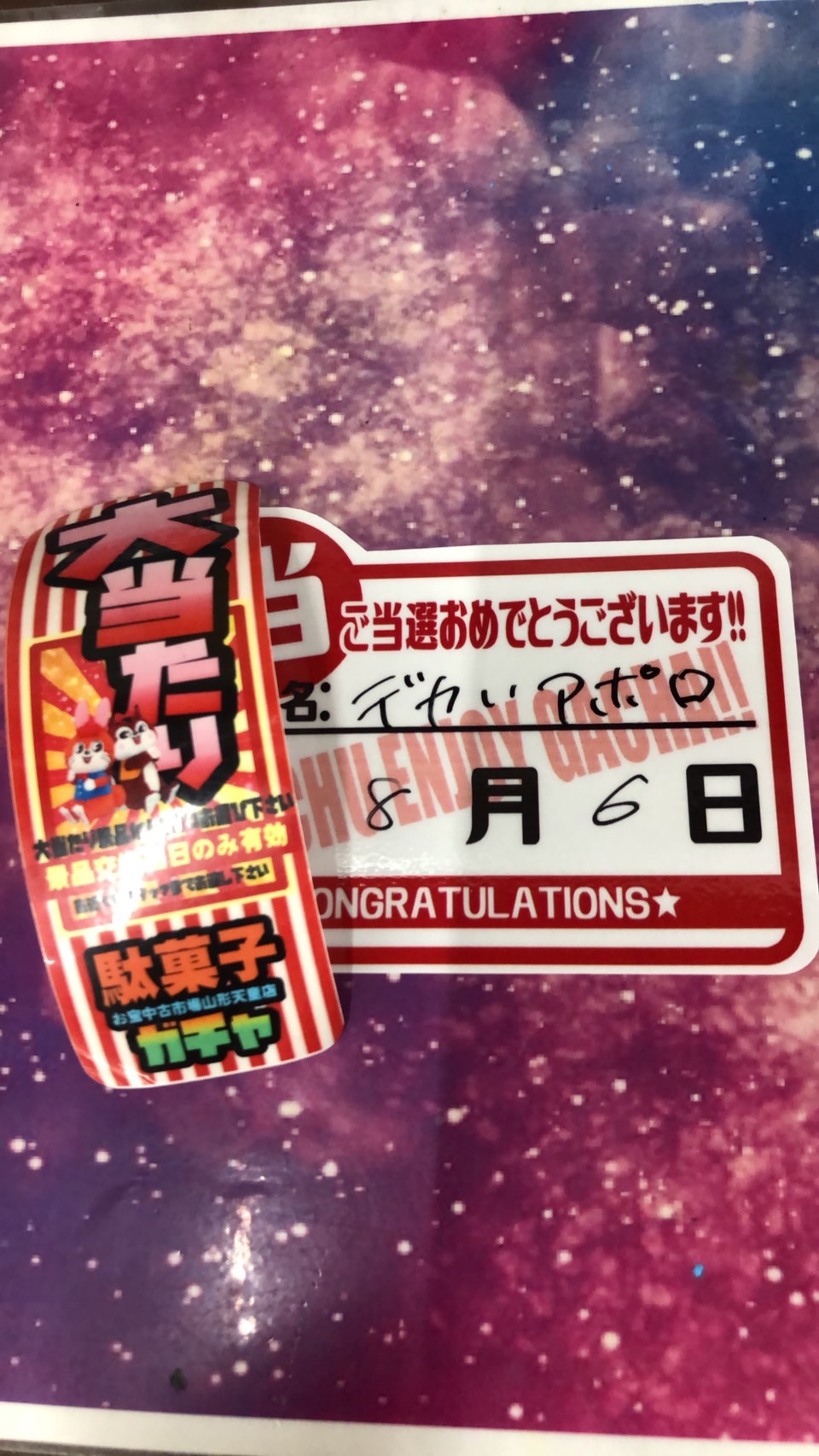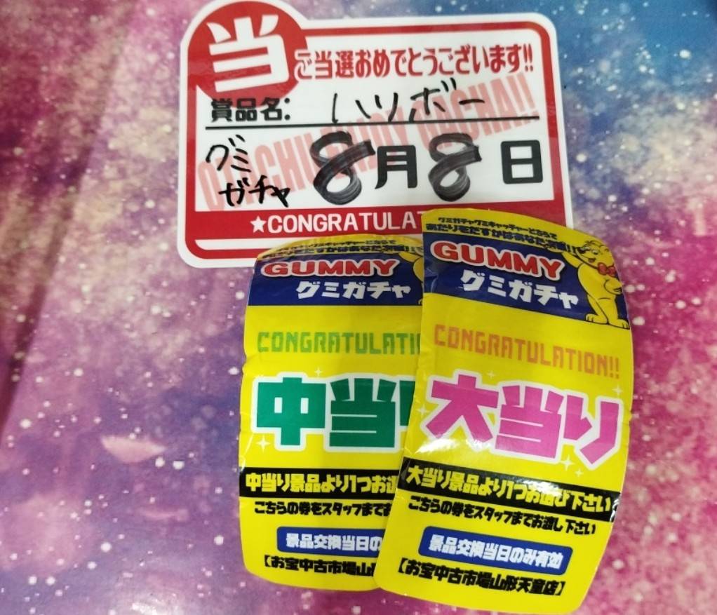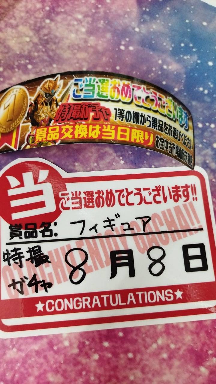 ★おもちゃ箱ガチャA賞出ました!★ 2025年8月8日 おもちゃ箱ガチャA賞出ました‼️ おめでとうございます‼️‼️🎉 特撮ガチャNo.1出ました‼️ おめでとうございます! グミガチャ大当たり&中当たり出ました‼️ おめでとうございます😊㊗️ 《ゲーム2000円ガチャ》S賞でましたぁぁ🎮👾🎮 ご当選おめでとうございます🙌✨ 駄菓子ガチャ大当たり出ました🎯 おめでとうございます㊗️
