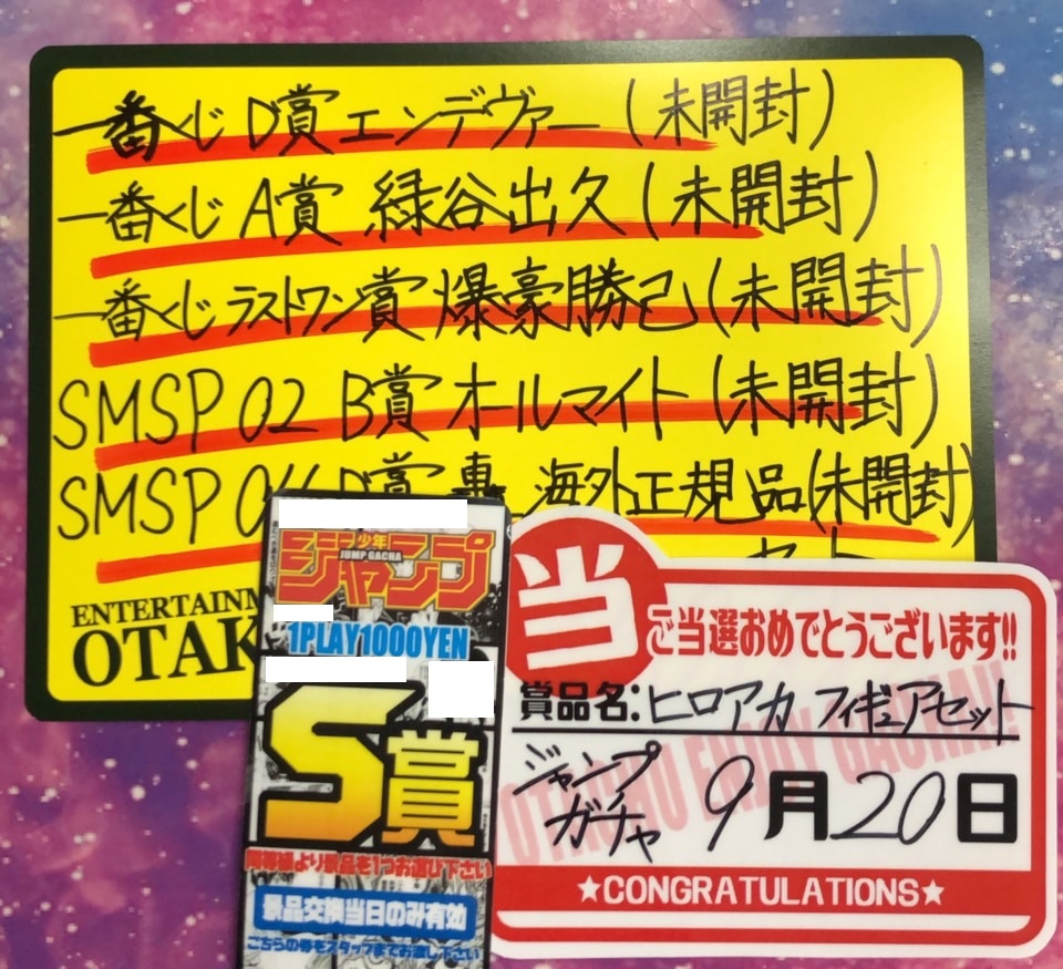 ジャンプガチャ大当たり出ました😆おめでとうございます🎊他 2025年9月20日 ジャンプガチャ大当たり出ました😆おめでとうございます🎊 スタバガチャS賞出ました‼️ ご当選おめでとうございます👏😊🎉 おもちゃ箱ガチャA賞出ました‼️ ご当選おめでとうございます👏😊🎉 カギガチャNo.1出ました‼️ ご当選おめでとうございます👏😆🎉 青ロッカーガチャNo.1出ました‼️ ご当選おめでとうございます✨😊👏