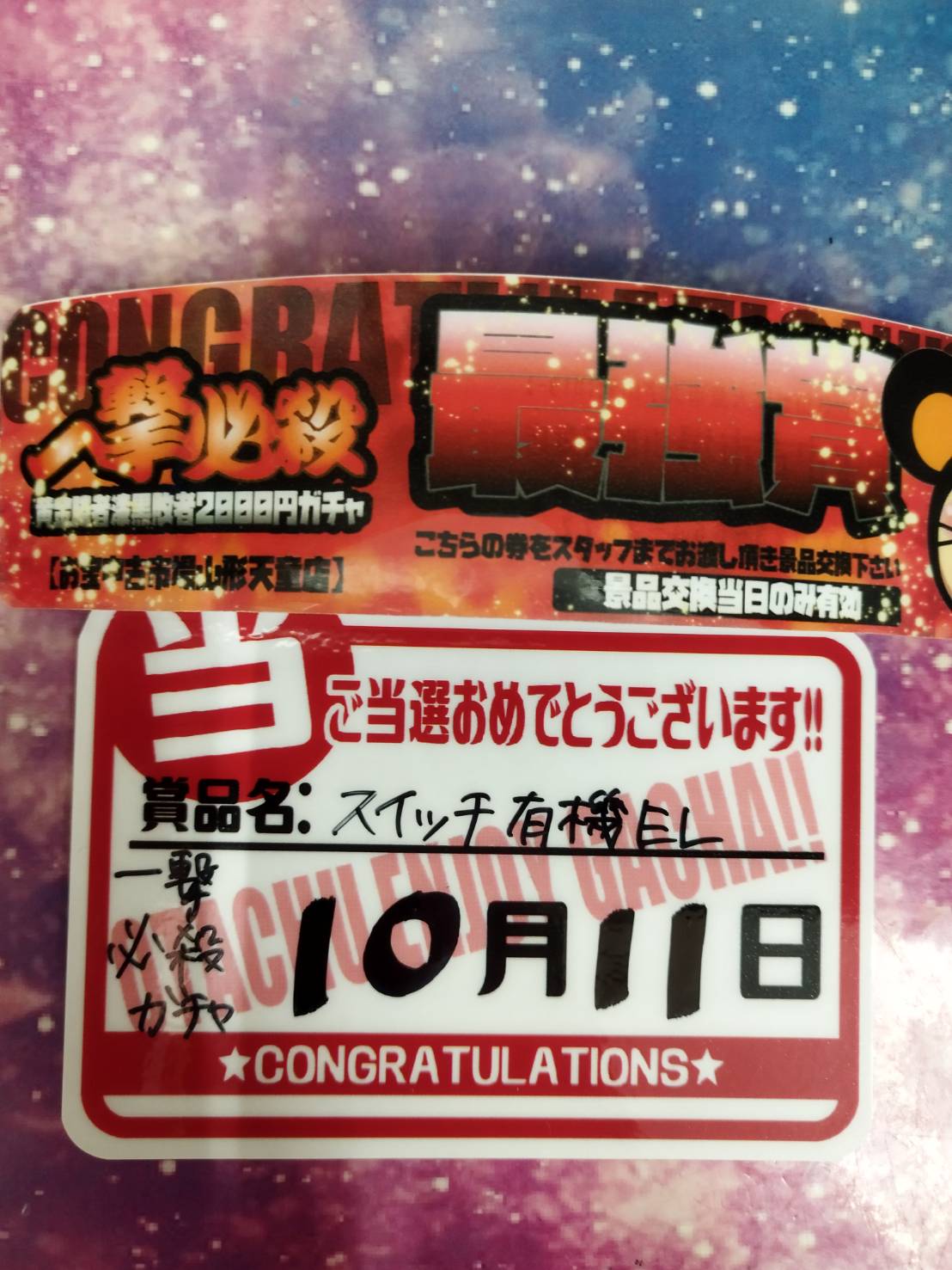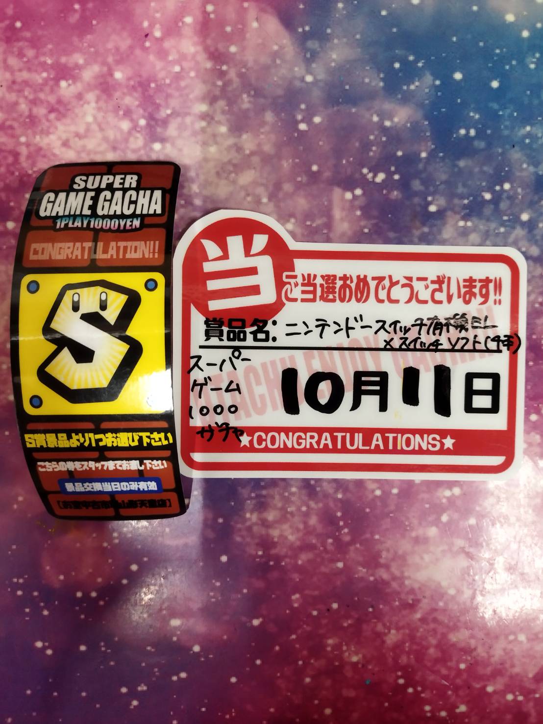 スーパーゲーム1000ガチャS賞、一撃必殺ガチャ最強賞、ゲーム2000ガチャS賞出ました‼️