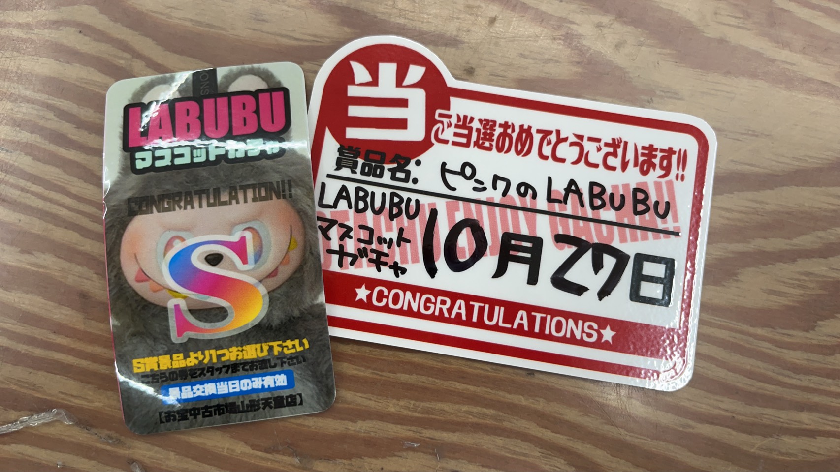 ★ジャンプガチャ 等景品獲得おめでとうございます!★ 2025年10月28日 ジャンプガチャ大当たり出ました😆 おめでとうございます🎊 《LABUBUマスコットガチャ》S賞でましたー❤️❤️ ご当選おめでとうございます🙌✨ ちいかわガチャ 大当たり出ました🎯 おめでとうございます🎊 《赤ロッカーガチャ》No.1出ましたぁ~❗❗❗ ご当選おめでとうございます🎉✨🥳