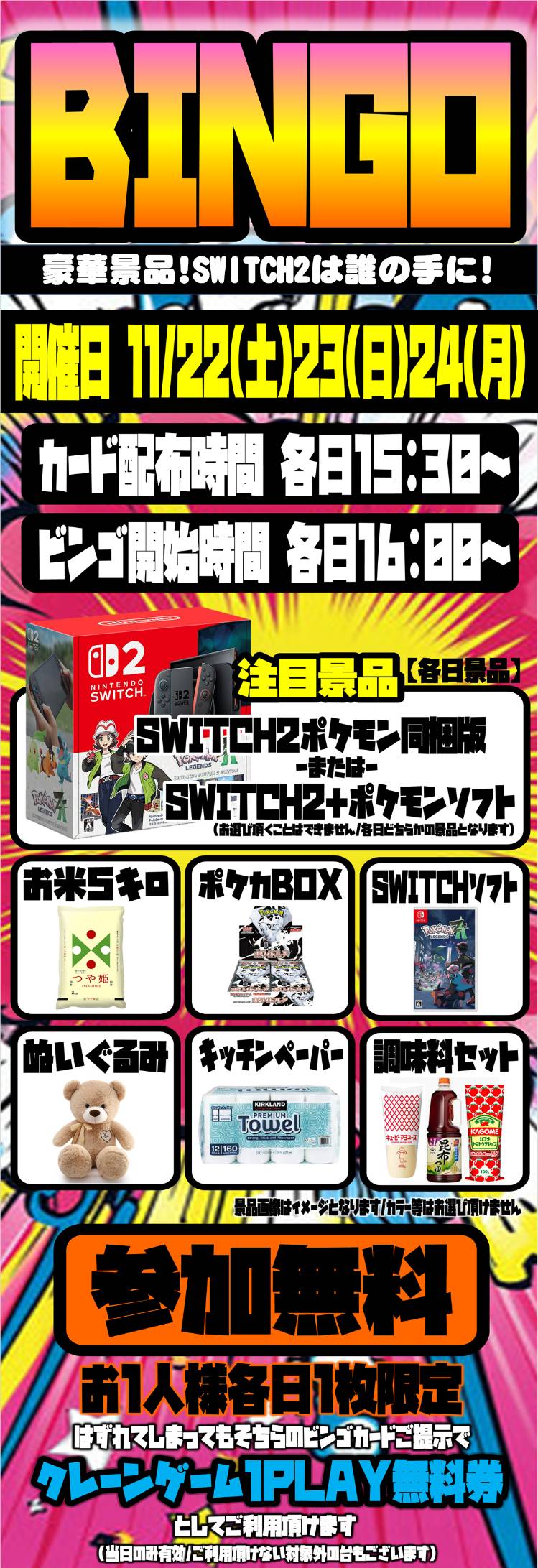 注目景品にSwitch2+ポケモンレジェンズZ-Aをご用意致しました😄