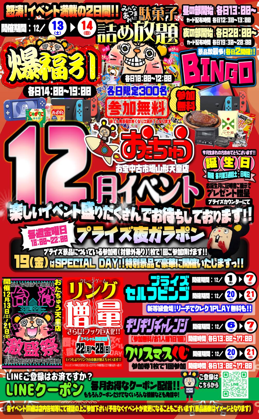 ★【12月イベント情報‼️】★ 2025年11月25日 2026年1月5日 【12月イベント情報‼️】 おたちゅう天童店では、12月もイベントモリモリ盛り沢山で営業致します‼️ 随時イベント内容更新していきます! 詳細はイベントカレンダーをご確認下さい🙇 ************************ こちら↓もぜひチェックしてみてくださいね♪(*´▽`*) ・最新のイベント情報はこちら ・最新の買取情報はこちら
