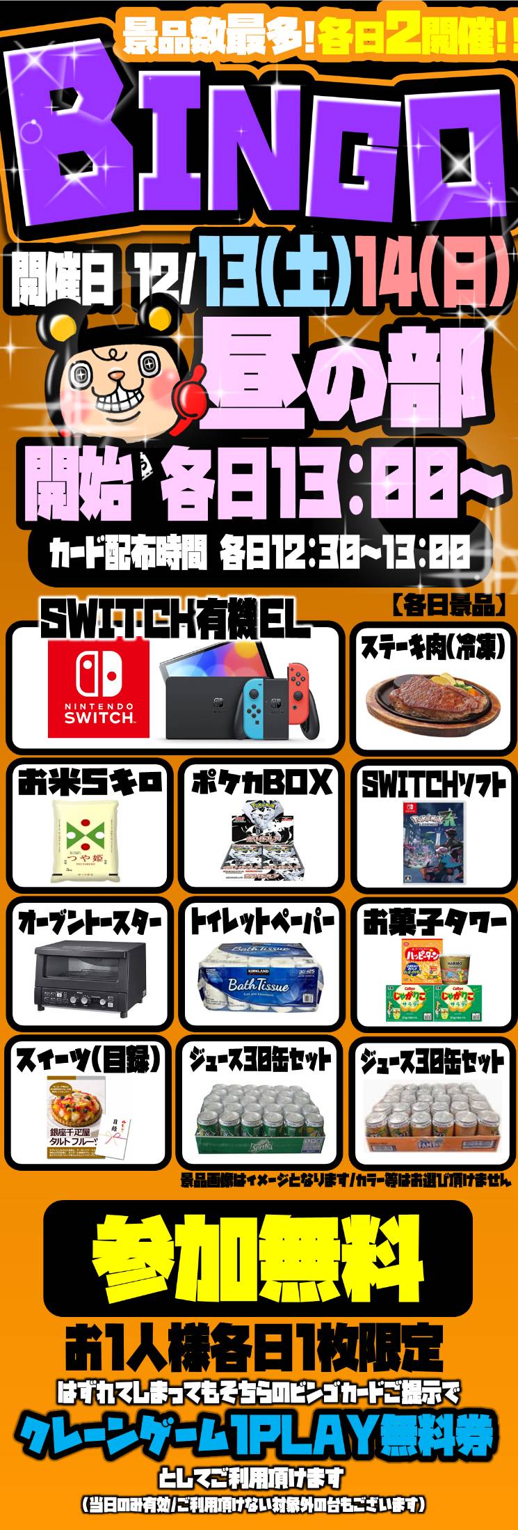 BINGO大会(昼の部、夜の部)を開催致します‼️】