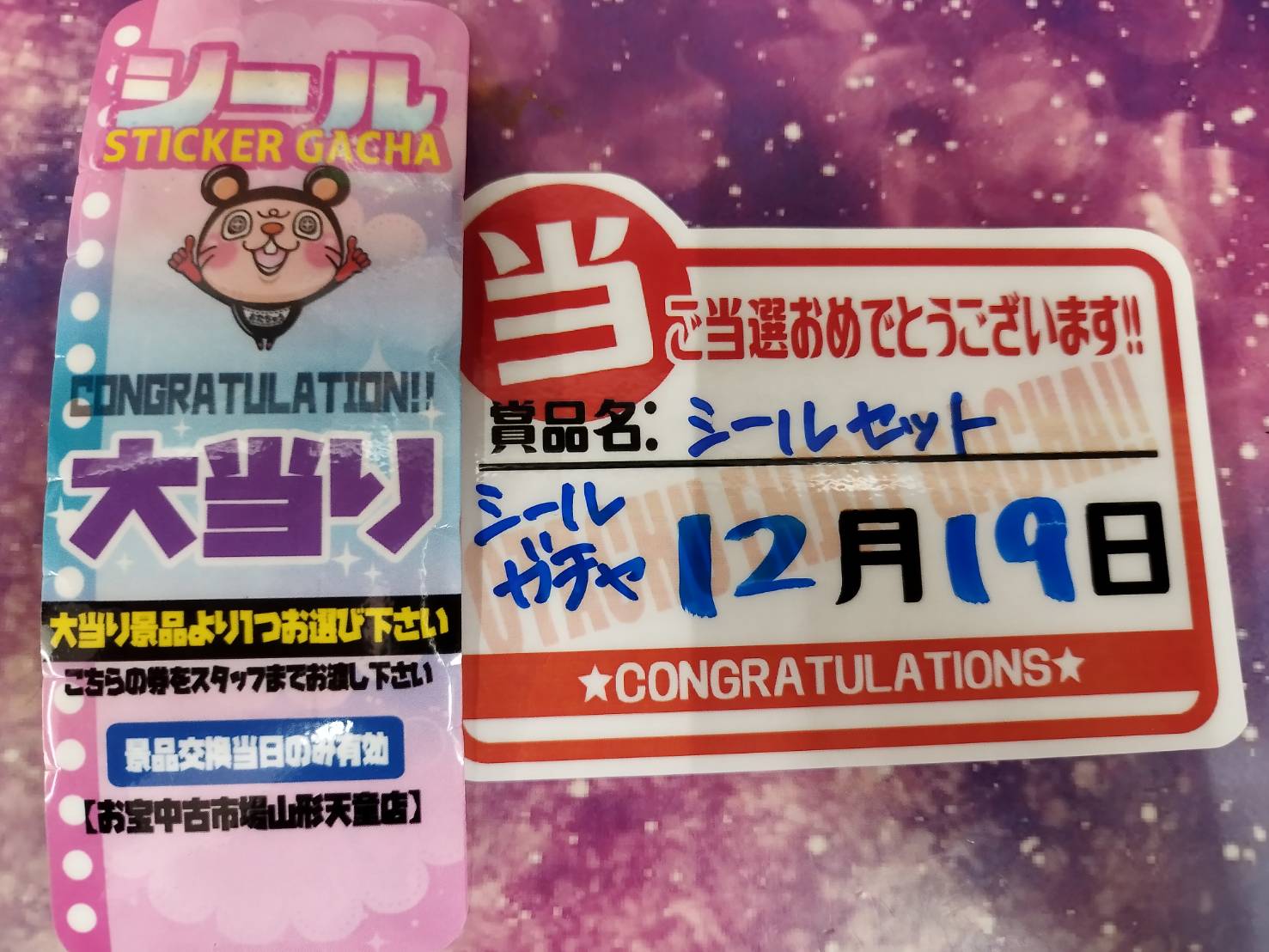《シールガチャ》大当り出ましたぁぁぁ〜🙌✨ ご当選おめでとうございまーす🎊等 2025年12月19日 《シールガチャ》大当り出ましたぁぁぁ〜🙌✨ ご当選おめでとうございまーす🎊 ジャンプガチャ大当たり出ました😆おめでとうございます🎉 《シールガチャ》大当り出ました〜‼️ ご当選おめでとうございます🎉😆👏 《サンリオガチャ》大当たりでましたぁぁぁ🎀♥️ ご当選おめでとうございます🙌✨ 特撮ガチャ 1番出ました‼️ おめでとうございます‼️