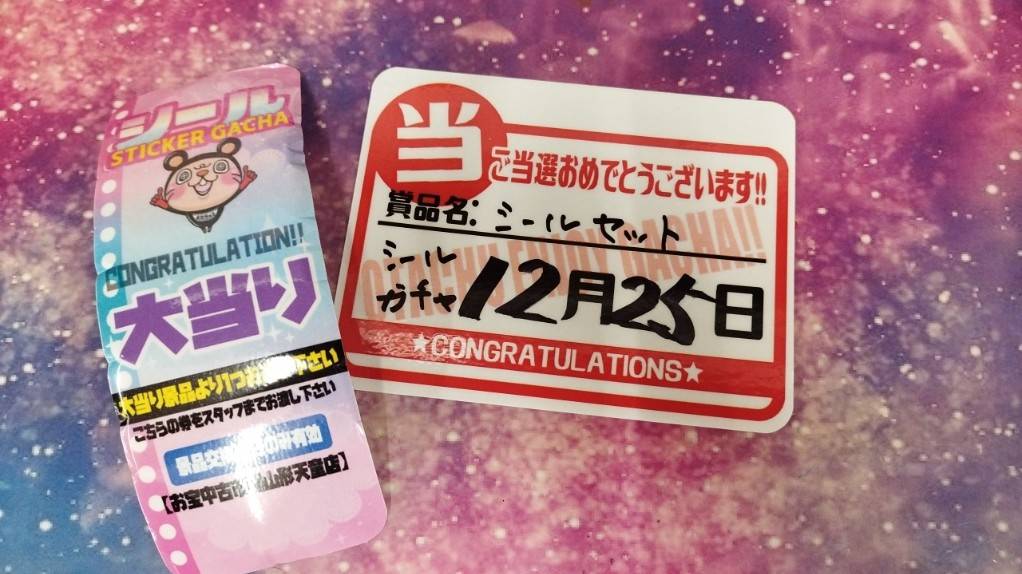 天国地獄ガチャ天国賞出ました‼️他 2025年12月25日 天国地獄ガチャ天国賞出ました‼️ おめでとうございます✨㊗️ 《駄菓子ガチャ》大当り出ましたーー‼️ ご当選おめでとうございます✨😆🍭 《グミガチャ》大当り出ました‼️ ご当選おめでとうございます🎉😆😊 《レトロガチャ》当選でましたー🎮👾!!!! ご当選おめでとうございます🙌✨ 《おもちゃ箱ガチャ》A賞出ました〜🤖🧸 ご当選おめでとうございます🙌✨ ゲーム¥1000ガチャS賞出ました❗️ おめでとうございます‼️🥳👏