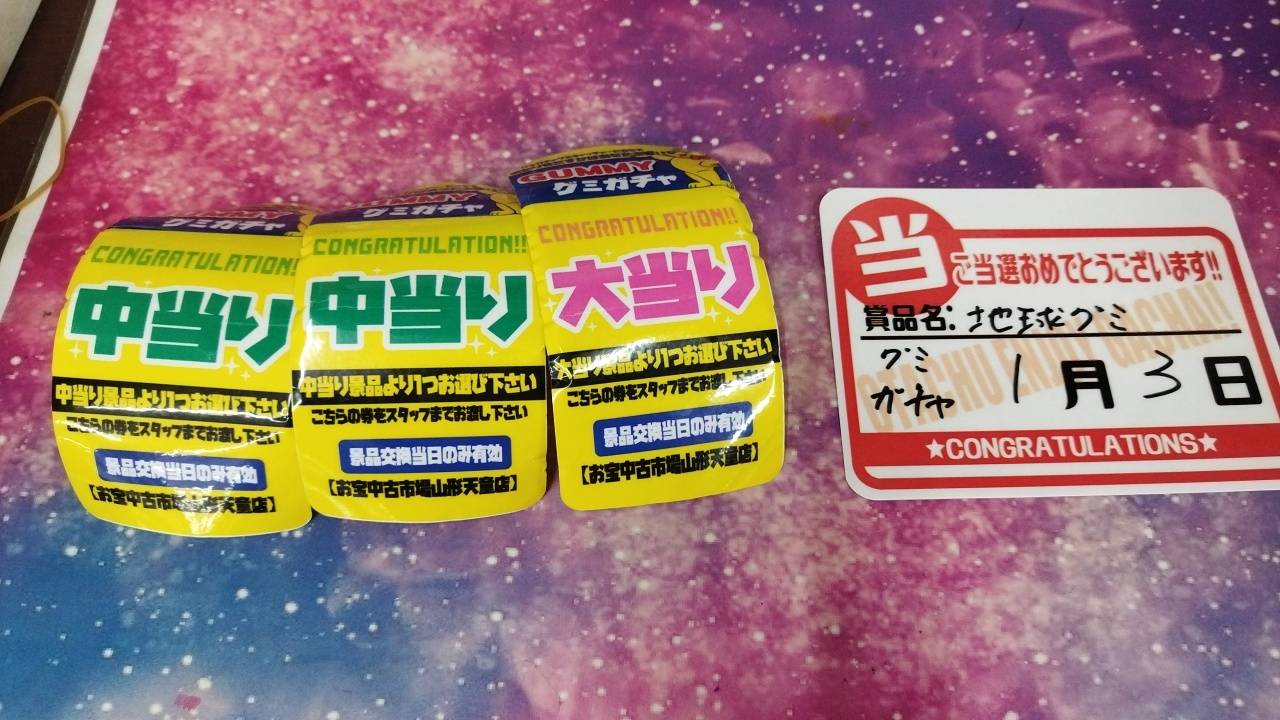 おもちゃ箱ガチャ、アンパンマン100ガチャ、シールガチャ、それぞれ最上位賞出ましたぁぁぁ~‼️‼️‼️