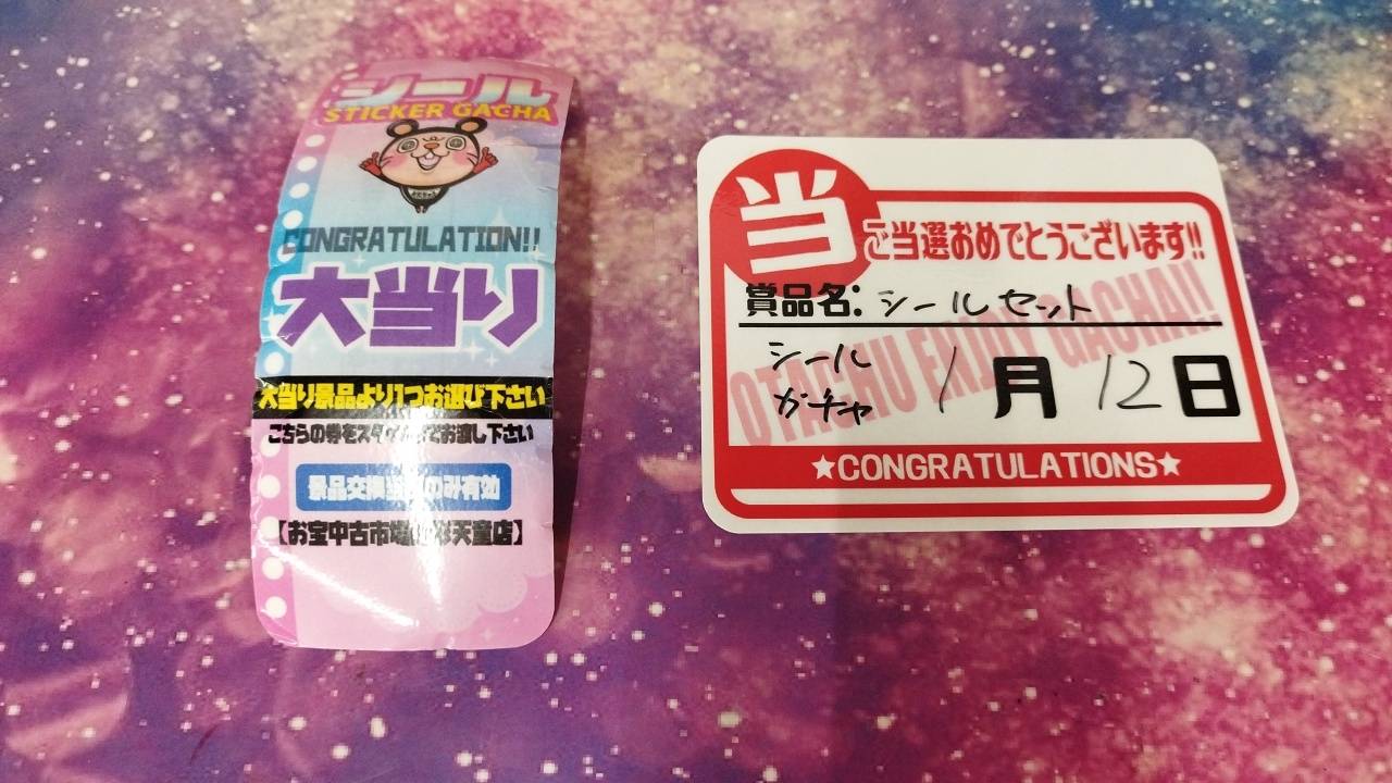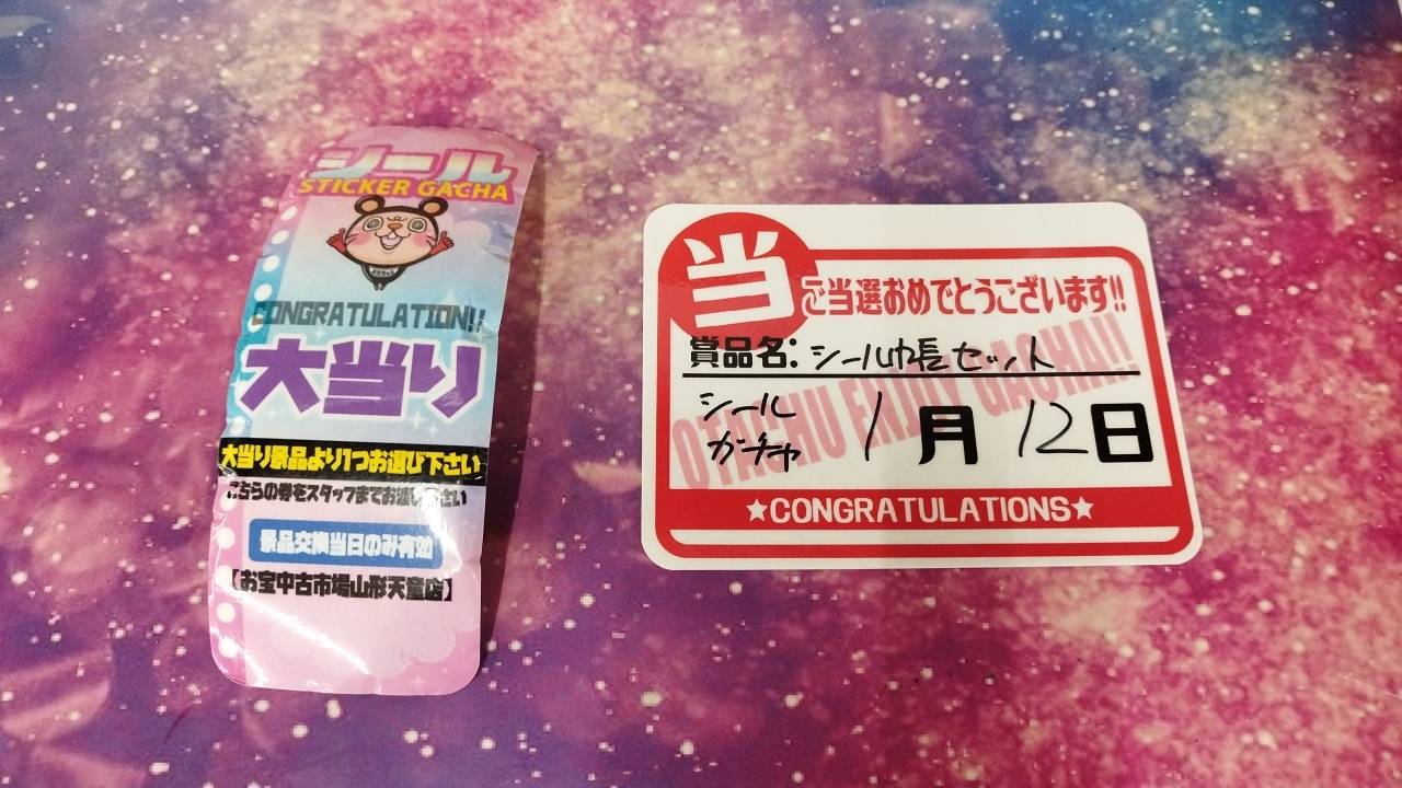 シールガチャ大当り出ました‼️他 2026年1月12日 シールガチャ大当り出ました‼️ シールガチャ大当り出ました‼️ ゲーム1000ガチャS賞出ましたぁぁぁ~‼️‼️‼️ ご当選おめでとうございまぁーす✨😄✨ おもちゃ箱ガチャA賞出ましたぁぁぁ~‼️‼️‼️ ご当選おめでとうございまぁーす✨😄✨ 《LABUBUガチャ》S賞でましたー❤️❤️ ご当選おめでとうございます🙌✨ 《ブレインロットガチャ》大当り出ましたーーー‼️ ご当選おめでとうございます✨🎉😆 シールガチャ大当り出ました‼️