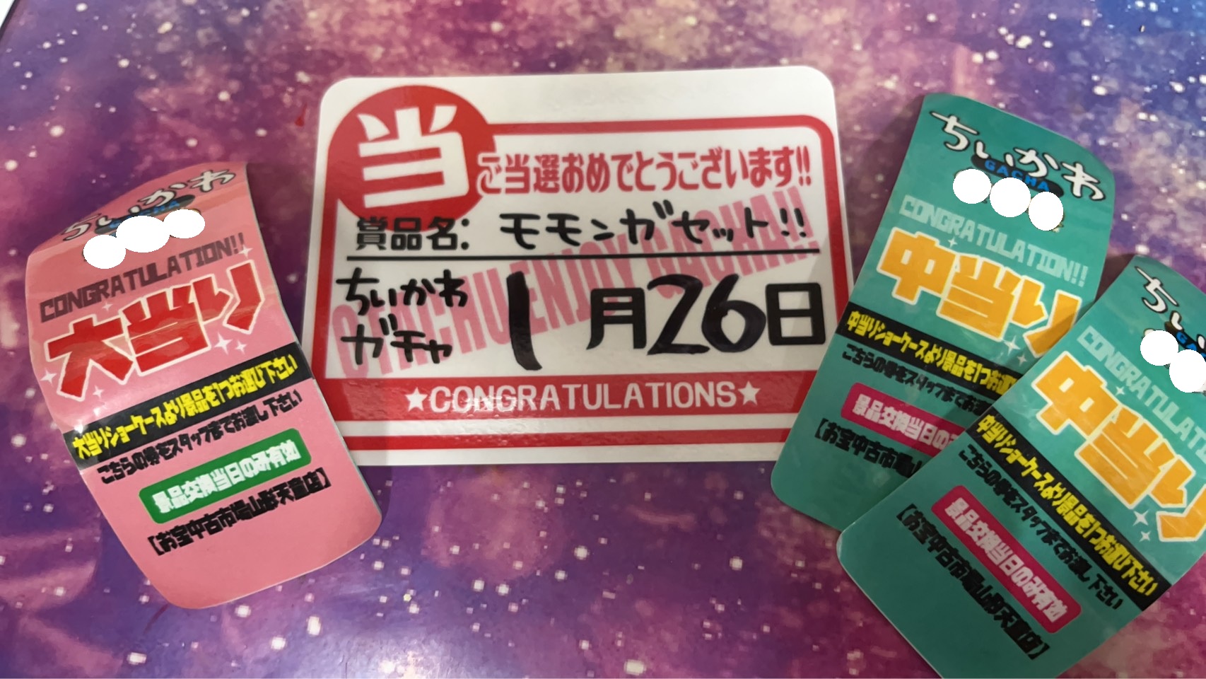 ■《ちいかわガチャ》大当り出ましたぁぁぁ❤️❤️他■ 2026年1月27日 ★お知らせ★ 《ちいかわガチャ》大当り出ましたぁぁぁ❤️❤️ ご当選おめでとうございます🙌🎊 《シールガチャ》大当り出ました〜🙌✨ ご当選おめでとうございまーす🎊 《カギガチャ》No.1出ました〜‼️ ご当選おめでとうございます🎉😆👏