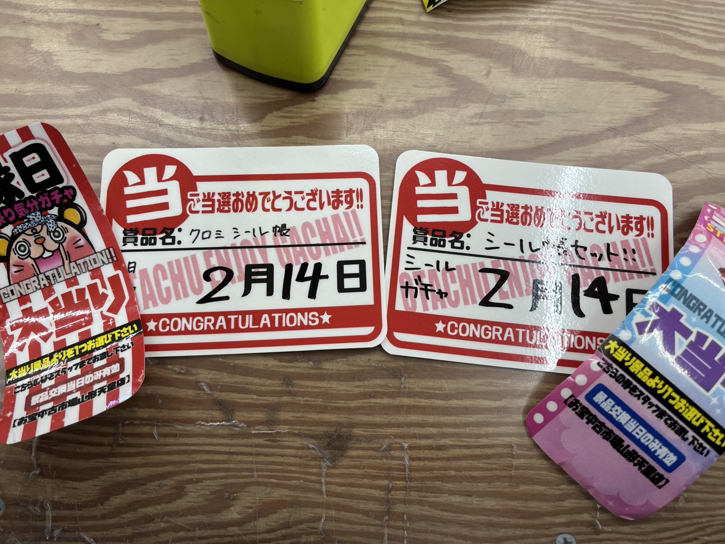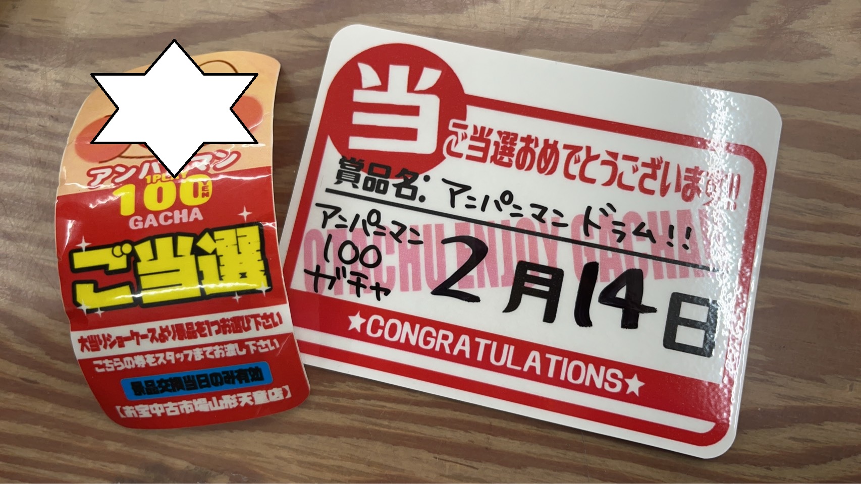 《シールガチャ》&《縁日ガチャ》大当りでましたー🙌✨ ご当選おめでとうございます🎉等 2026年2月14日 《シールガチャ》&《縁日ガチャ》大当りでましたー🙌✨ ご当選おめでとうございます🎉 《アンパンマン100円ガチャ》当選出ましたー🍞🍞❤️ おめでとうございます🎉😄👏