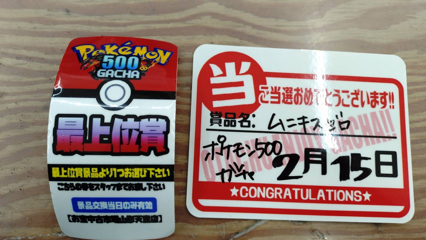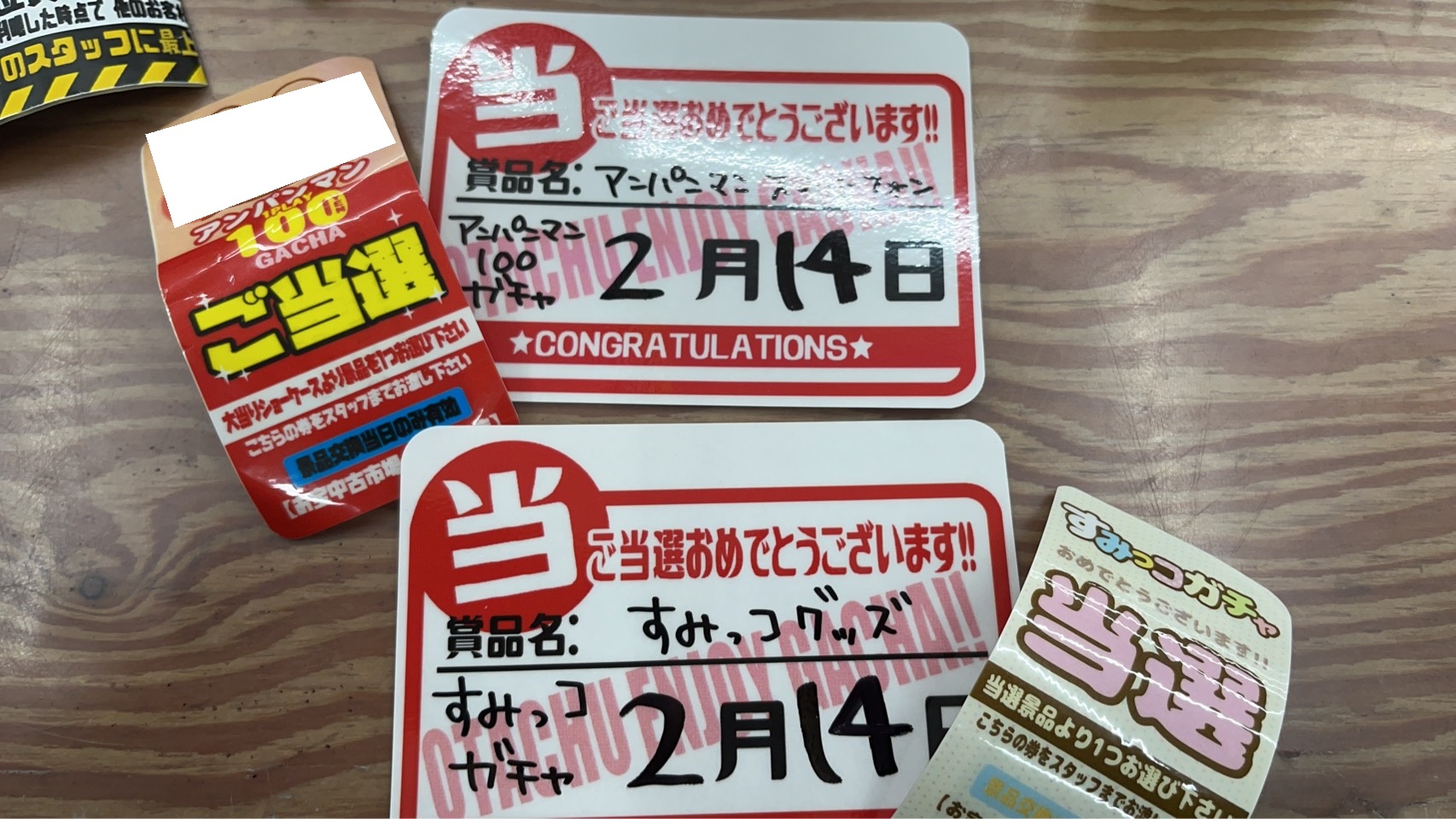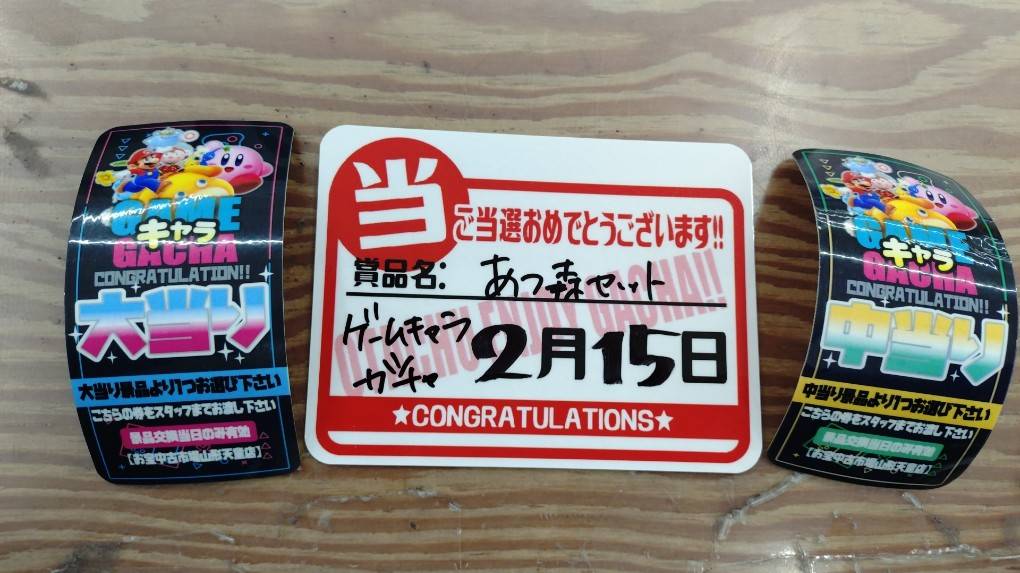 シールガチャ、駄菓子ガチャ、縁日ガチャ、シールガチャ、コスメガチャ、ポケモン500ガチャ、ゲームキャラガチャ、それぞれ最上位賞出ましたぁぁぁ~‼️‼️‼️
