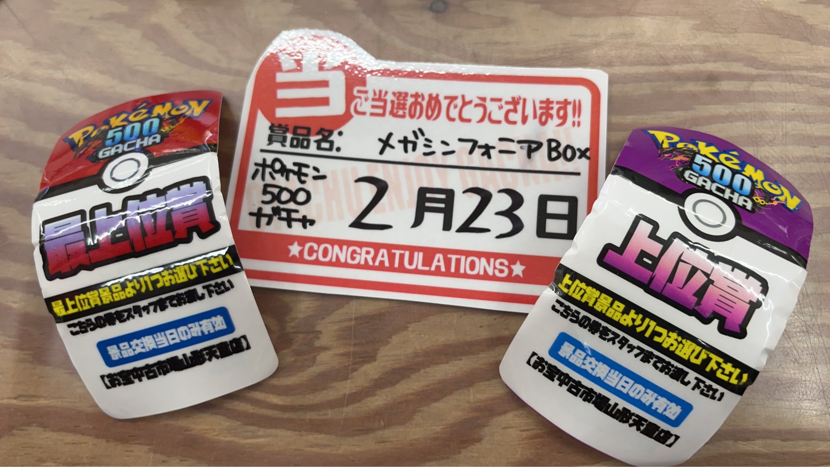 シールガチャ大当りおめでとうございます✨ 2026年2月23日 シールガチャ大当りおめでとうございます✨ 《おもちゃ箱ガチャ》A賞出ました〜🤖🧸 ご当選おめでとうございます🙌✨ 《ポケモン500ガチャ》最上位賞出ましたぁ⚡️⚡️ おめでとうございます🎉👏