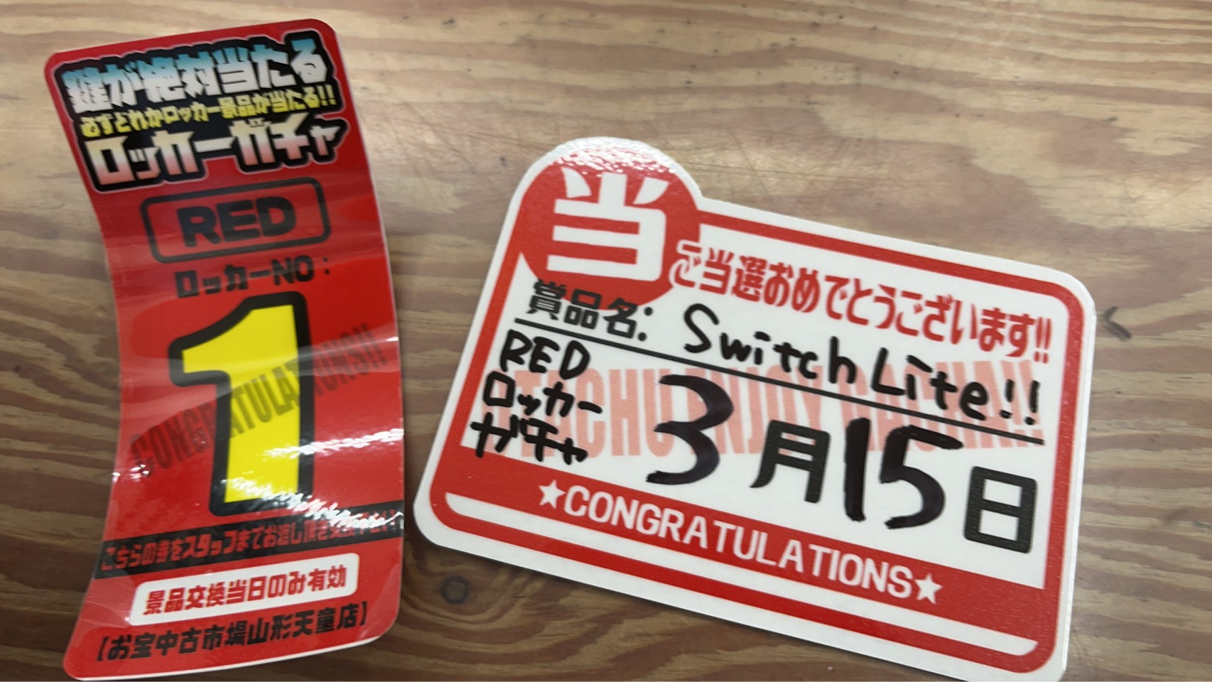 ■《REDロッカーガチャ》No.1出ましたぁ~❗ 他■ 2026年3月15日 ★お知らせ★ 《REDロッカーガチャ》No.1出ましたぁ~❗❗❗ ご当選おめでとうございます🎉✨🥳 《ゲームキャラガチャ》大当り出ましたぁ〜❗️❗️❗️ ご当選おめでとうございます🎊✨👏