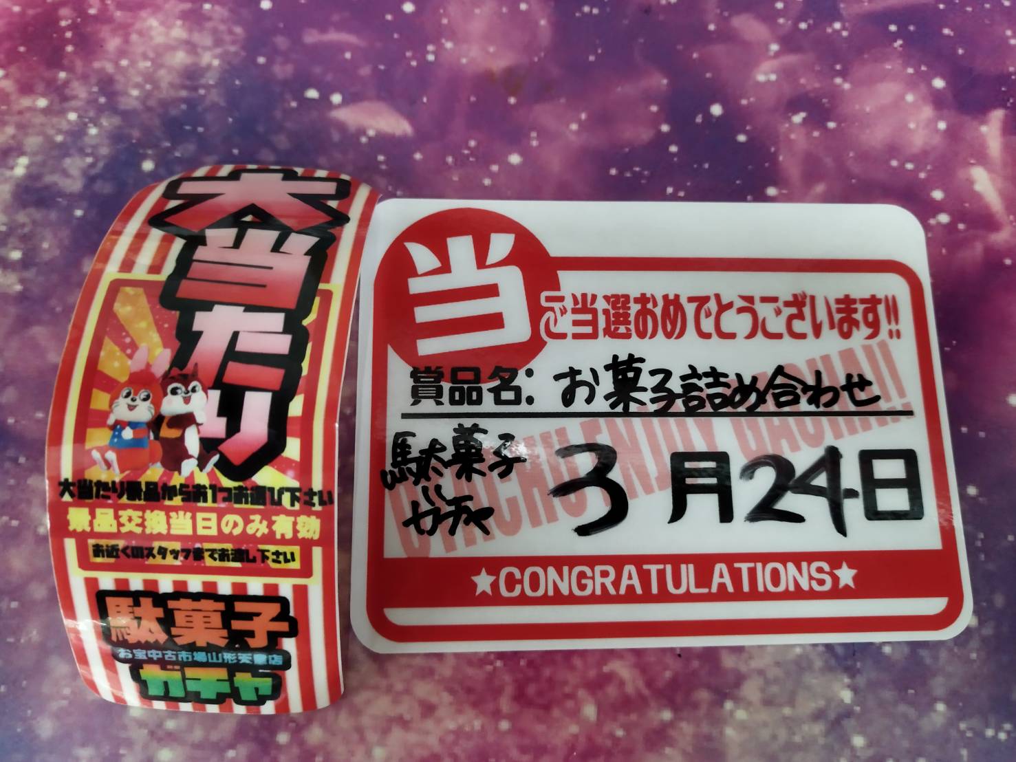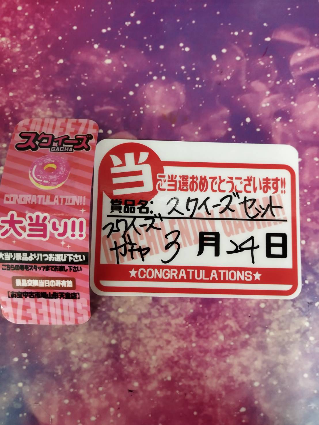 スクイーズガチャ大当たり出ましたぁぁぁ~‼️‼️‼️ 他 2026年3月24日 ★お知らせ★ スクイーズガチャ大当たり出ましたぁぁぁ~‼️‼️‼️ ご当選おめでとうございまぁーす✨😄✨ 《駄菓子ガチャ》大当り出ました‼️ ご当選おめでとうございます🎉😆👏