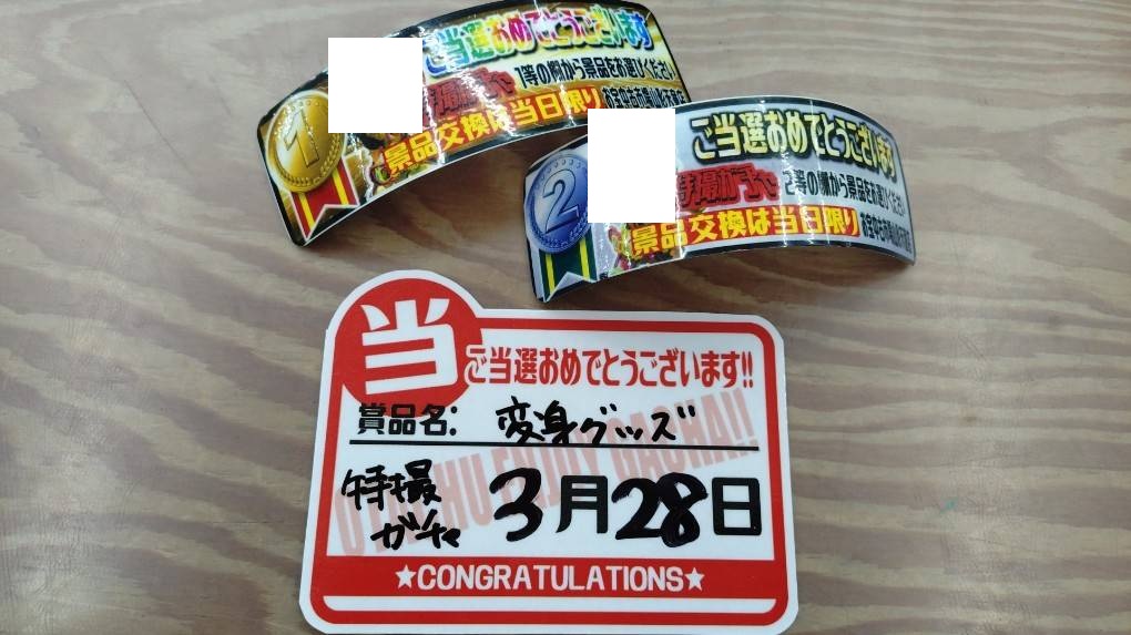 シールガチャ、特撮ガチャ、それぞれ最上位賞出ましたぁぁぁ~‼️‼️‼️