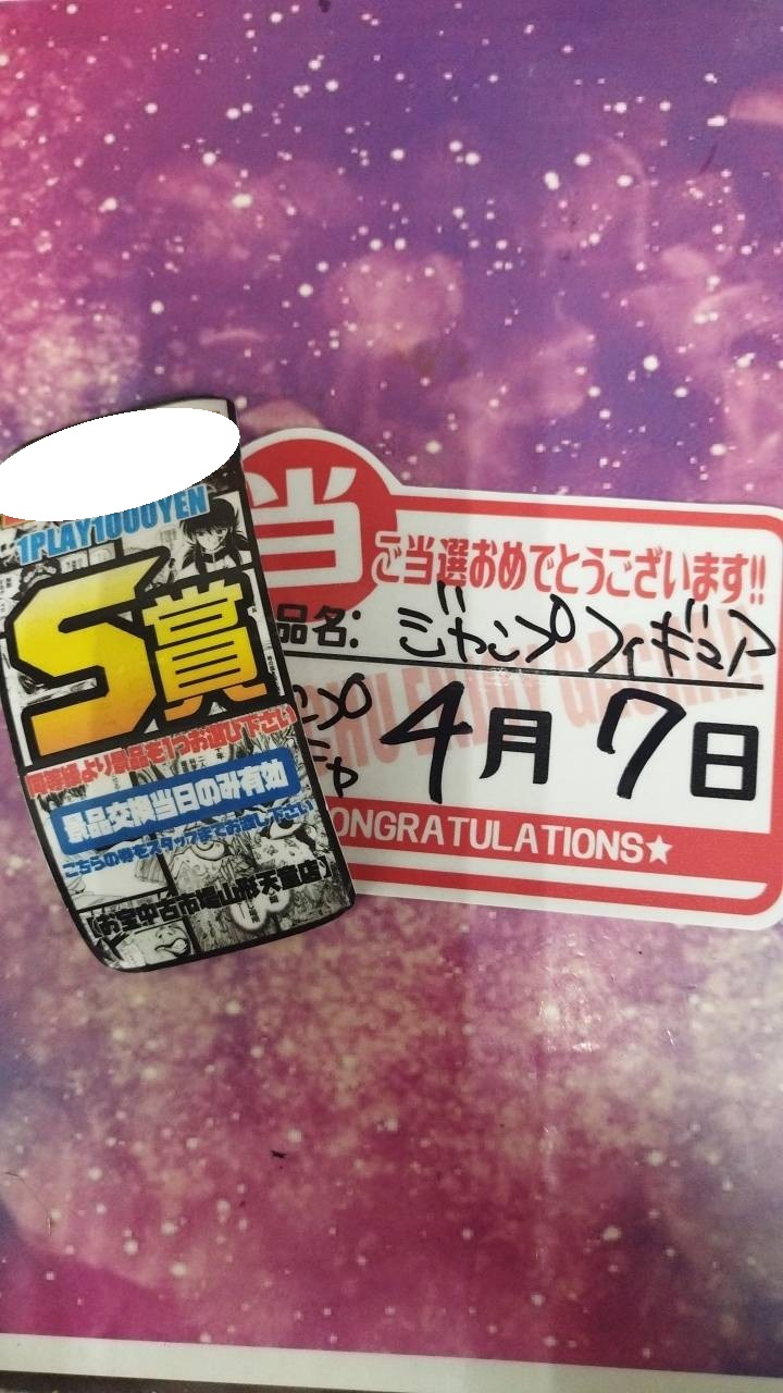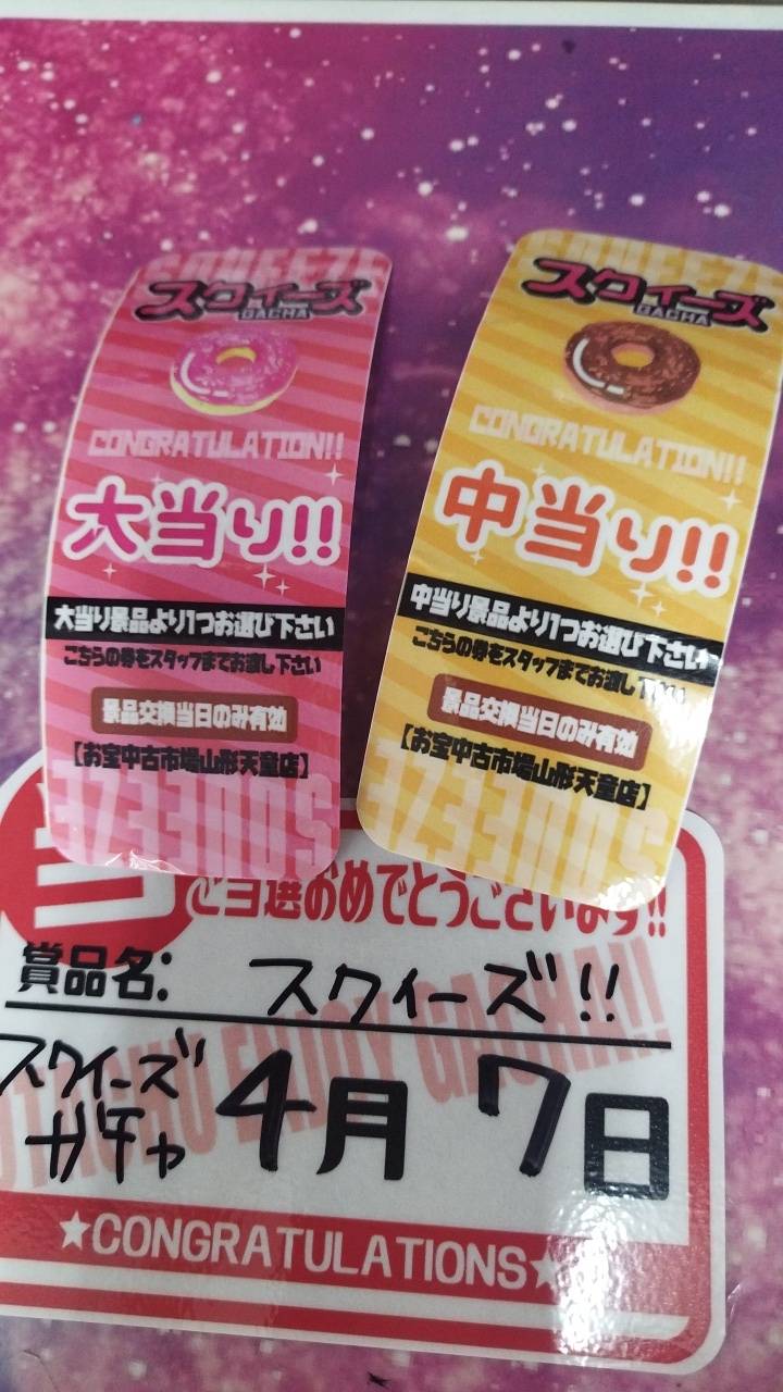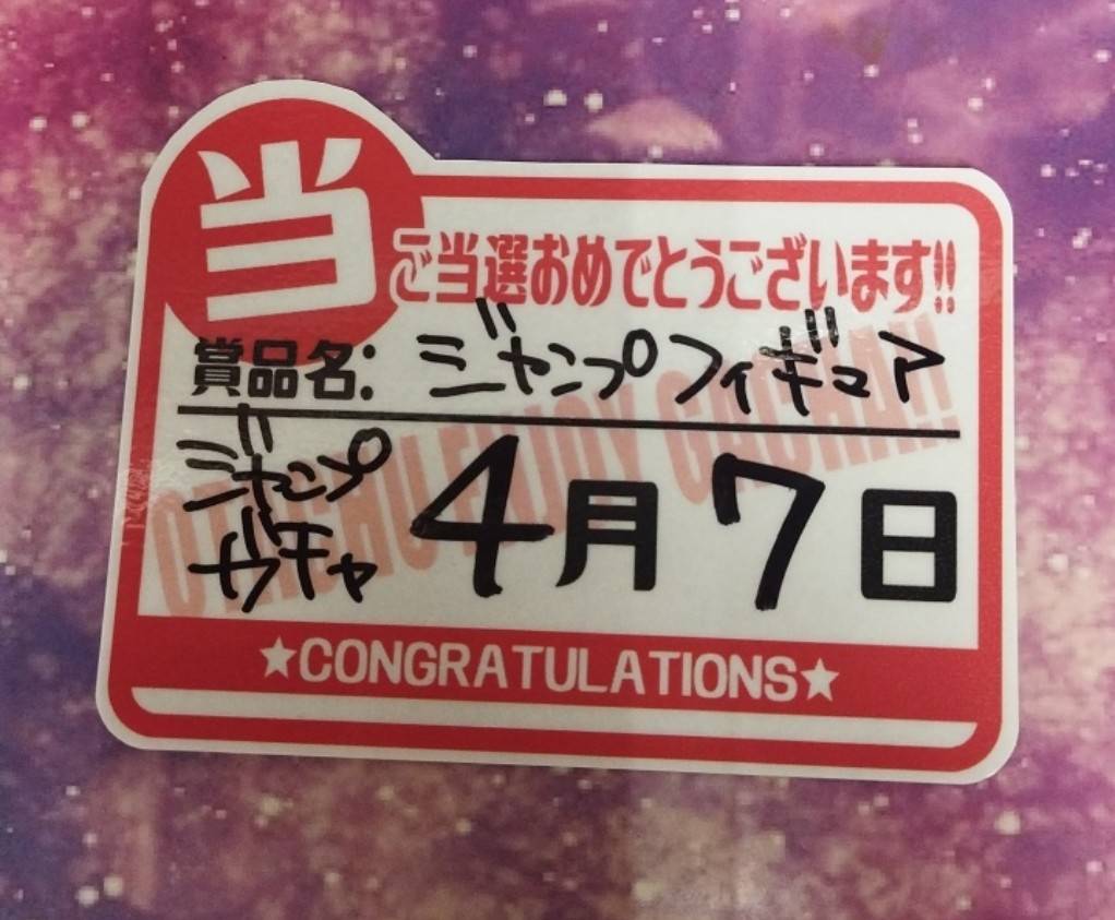 ジャンプガチャS賞出ました‼️他 2026年4月7日 ★お知らせ★ ジャンプガチャS賞出ました‼️ おめでとうございます✨㊗️ スクイーズガチャ大当り出ました‼️ ご当選おめでとうございます✨🎉😊 ジャンプガチャS賞出ました‼️ おめでとうございます✨㊗️ グミガチャ大当たり出ましたぁぁぁ~‼️‼️‼️ ご当選おめでとう✨😄✨