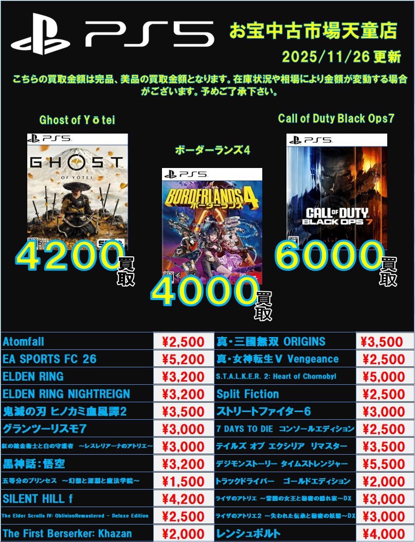 | PS5 | EA SPORTS FC 25 | ¥1,500 | 2025/11/26 | 4938833024695 |