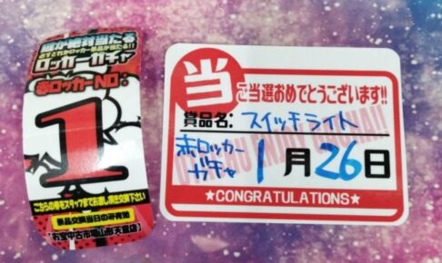 ガチャ★お知らせ★ 赤ロッカーガチャNo.1出ました‼️ おめでとうございます✨ おもちゃ箱ガチャA賞出ました‼️ おめでとうございます‼️